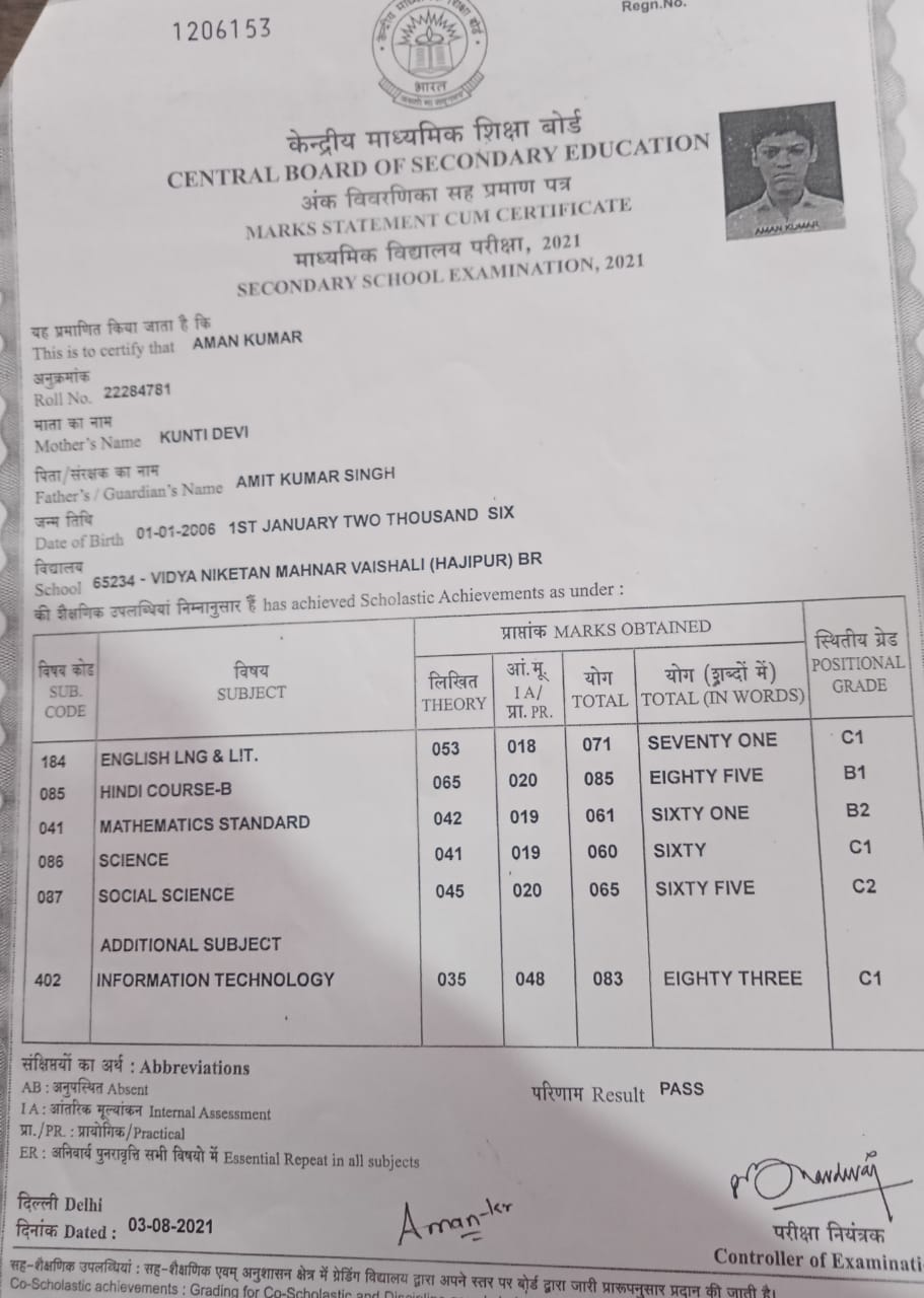 | Exam | Full Marks | Pass Marks | Marks Obtained |