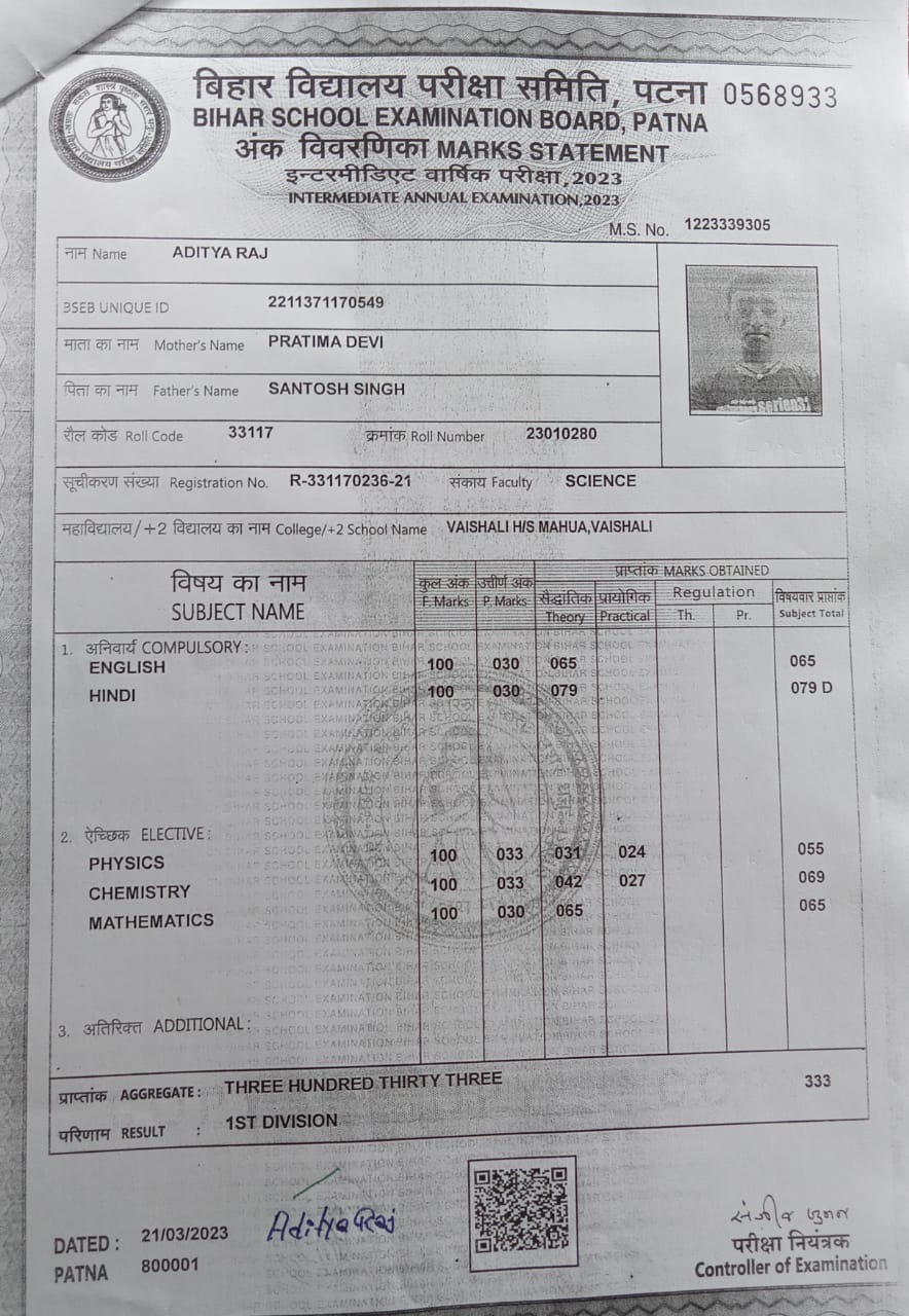 | Exam | Full Marks | Pass Marks | Marks Obtained |