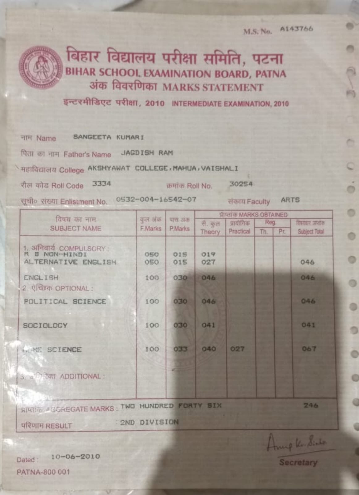 | : | Adarash high school road, Sarai (vaishali) pin code- 844125, Vaishali | |