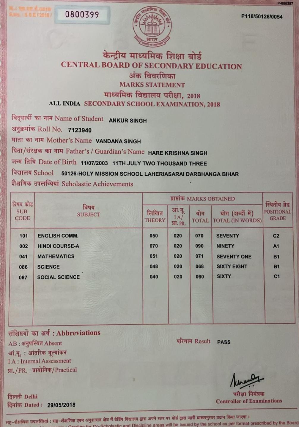 | Exam | Full Marks | Pass Marks | Marks Obtained |