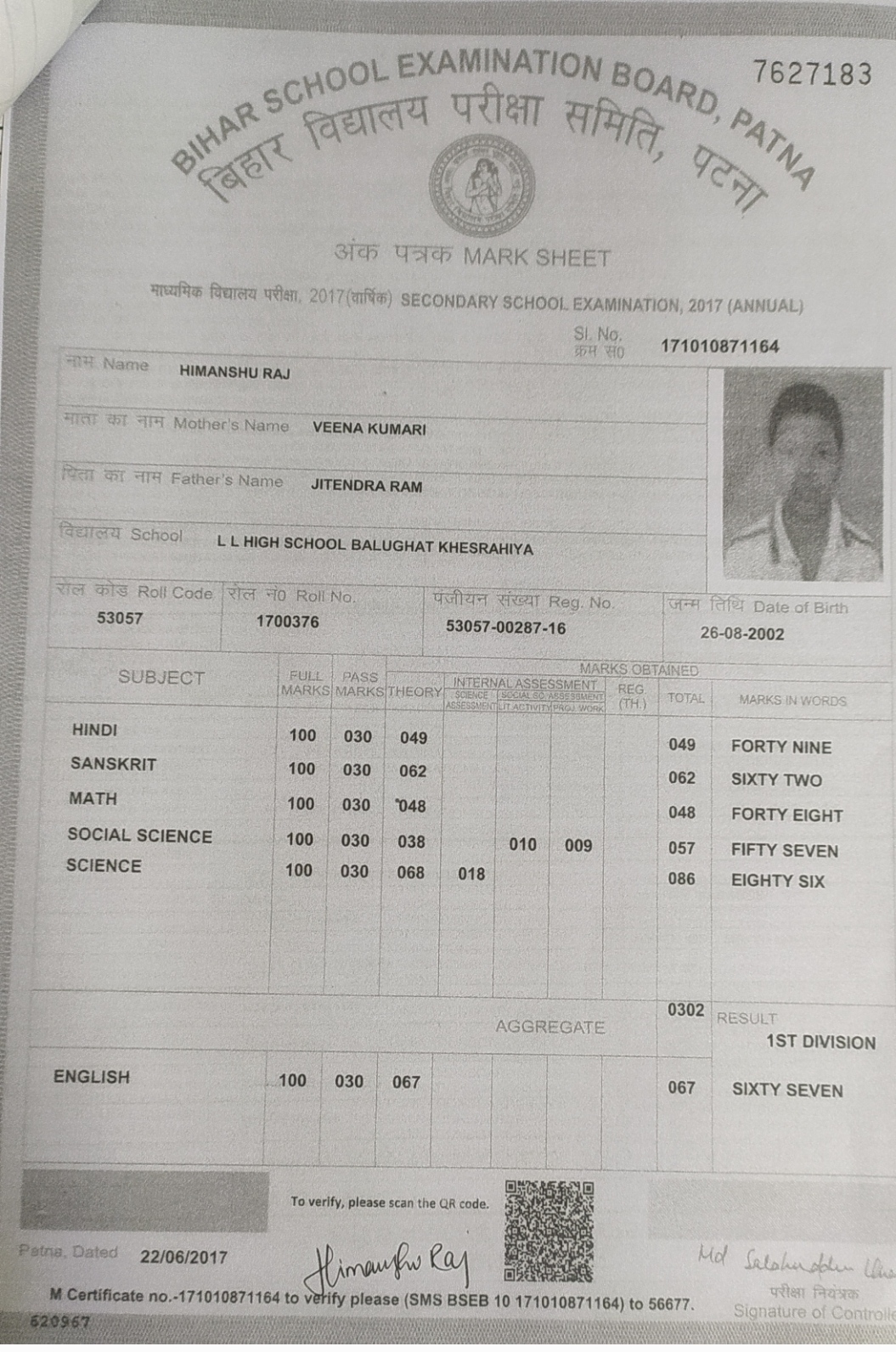 | : | Matric | |