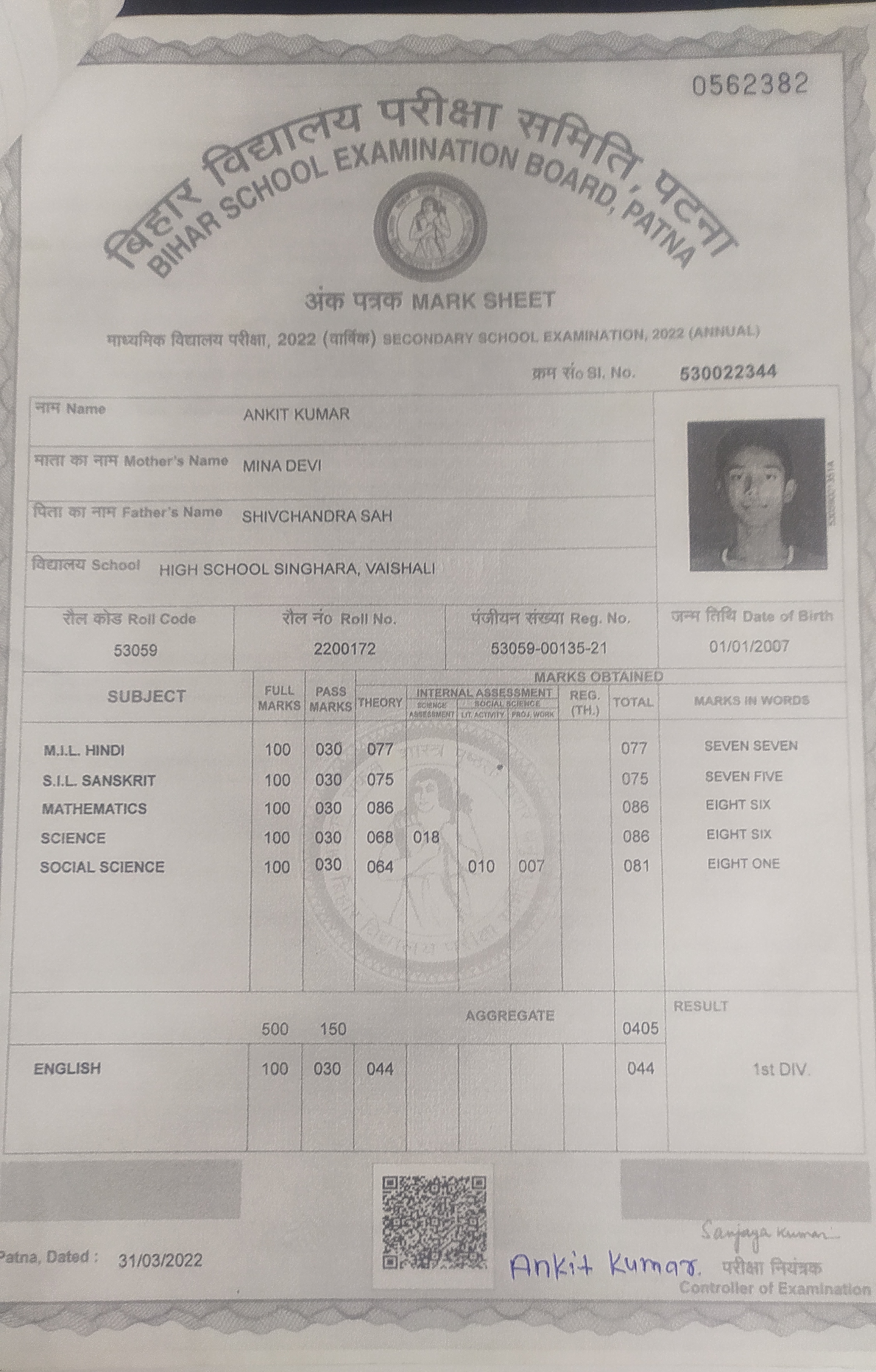 | Exam | Full Marks | Pass Marks | Marks Obtained |