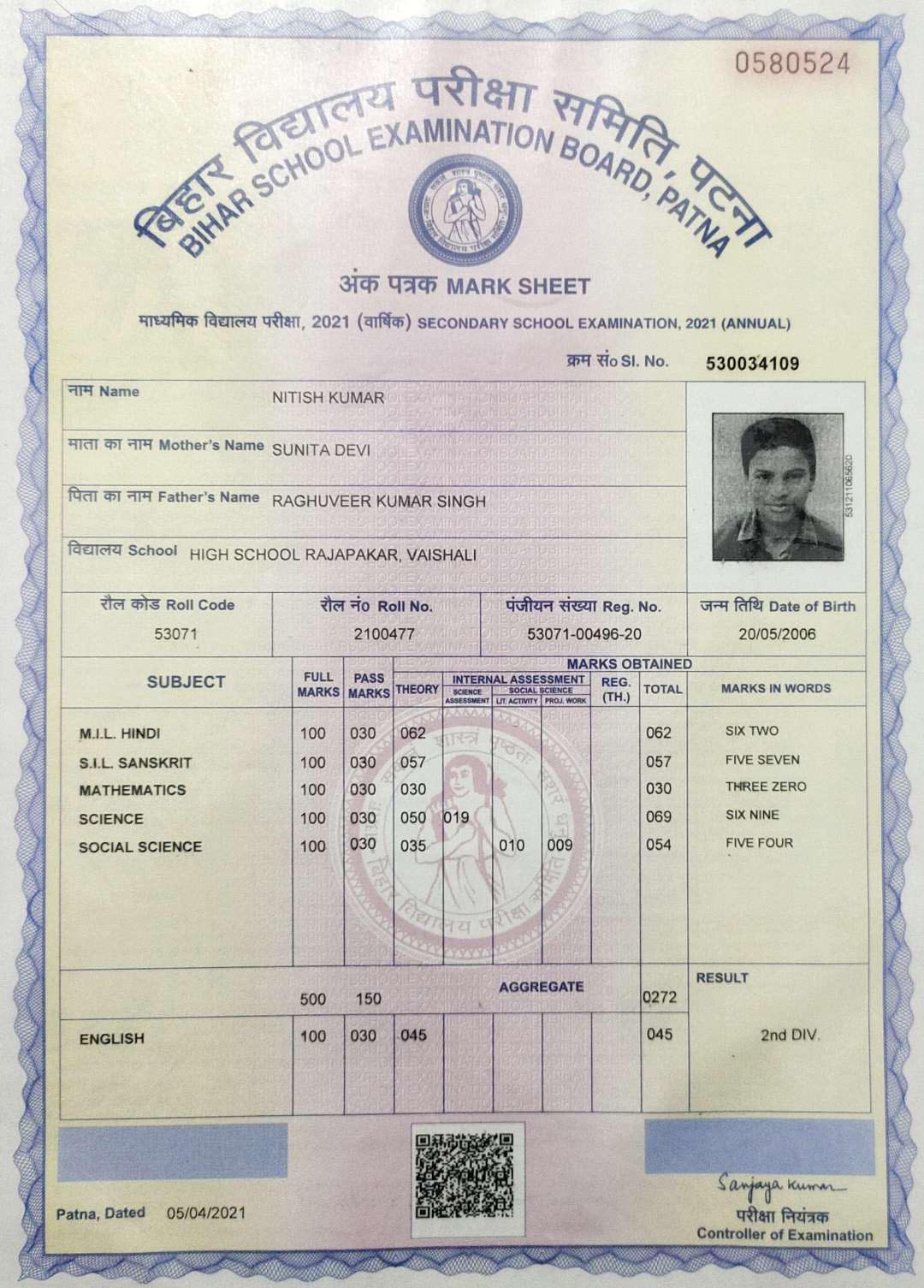 | : | Matric | |