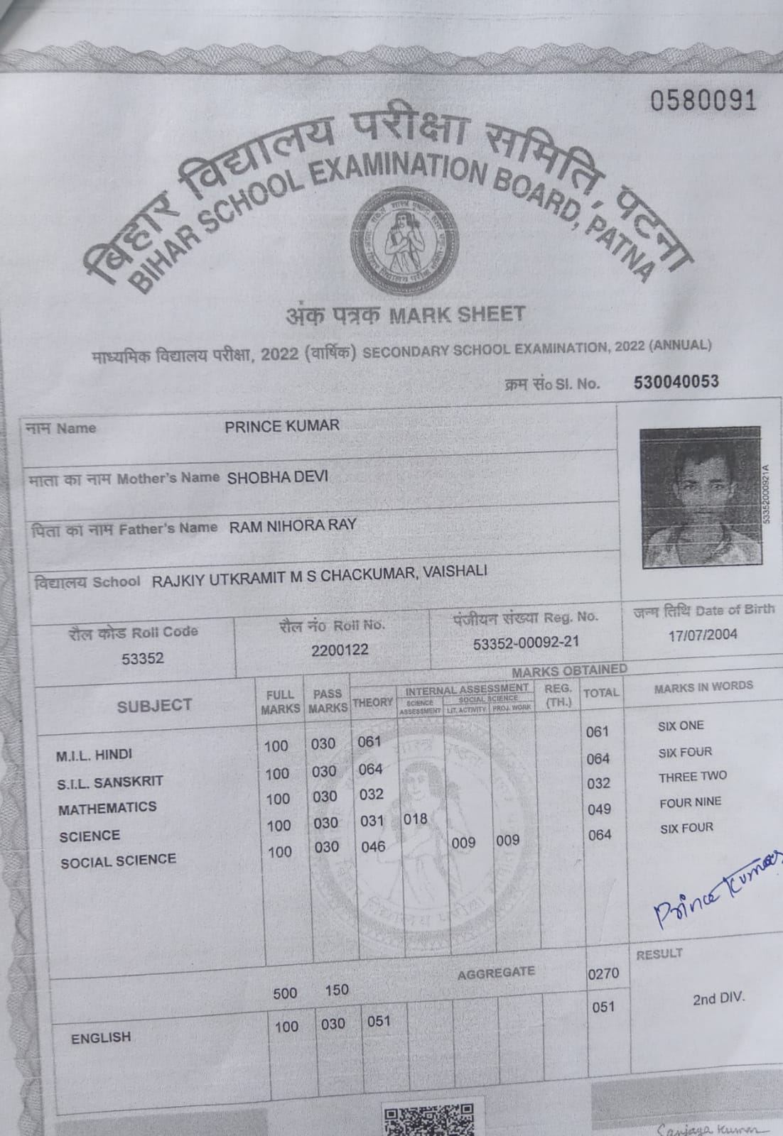 | Exam | Full Marks | Pass Marks | Marks Obtained |