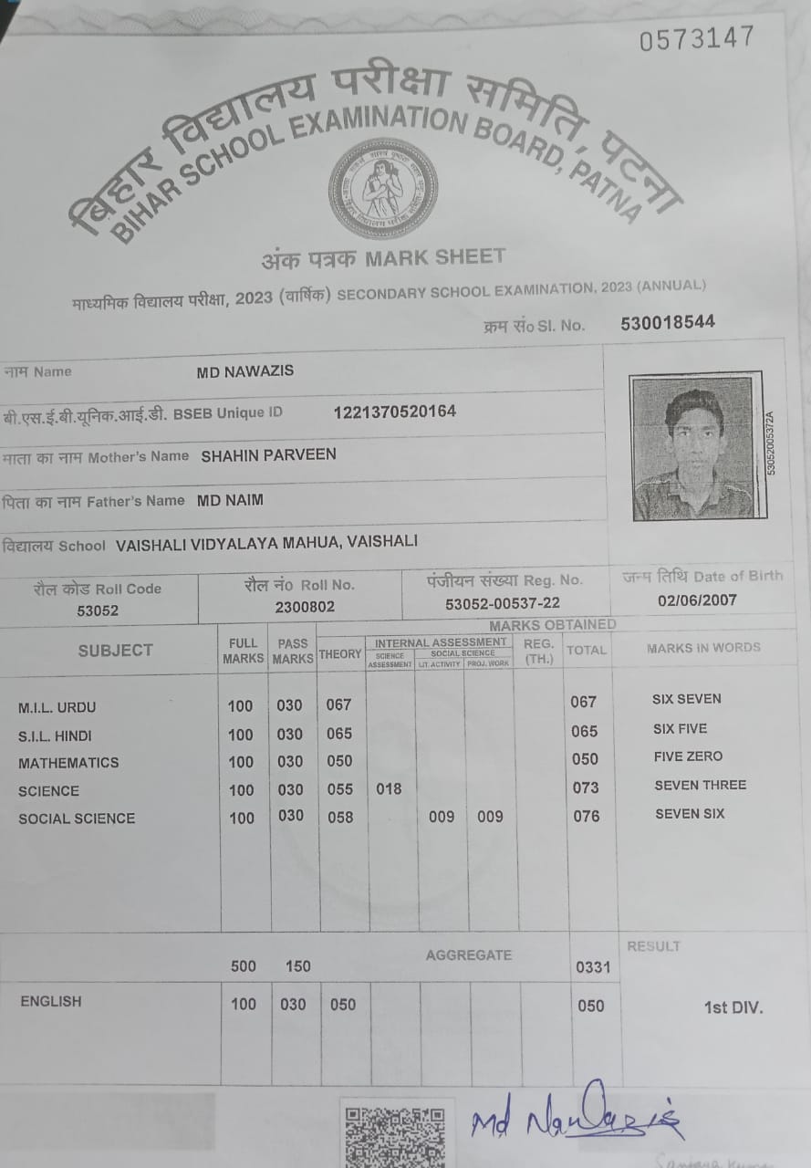 | Exam | Full Marks | Pass Marks | Marks Obtained |