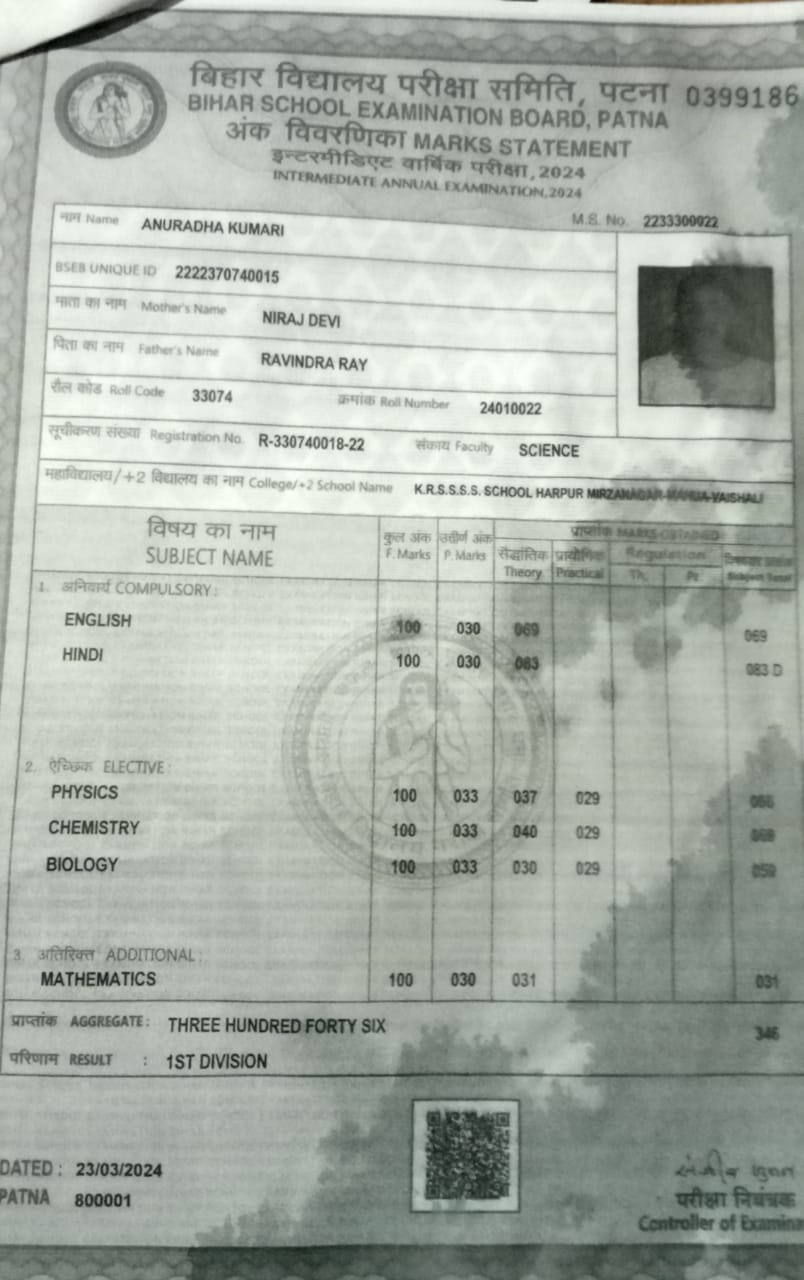| Exam | Full Marks | Pass Marks | Marks Obtained |