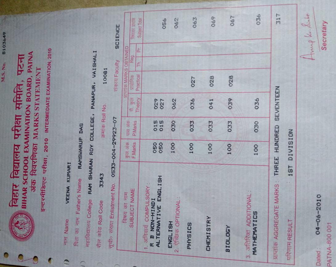 | Exam | Full Marks | Pass Marks | Marks Obtained |
