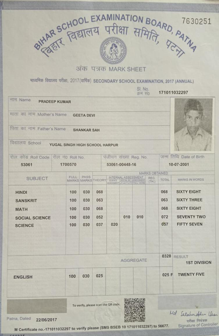 | Exam | Full Marks | Pass Marks | Marks Obtained |