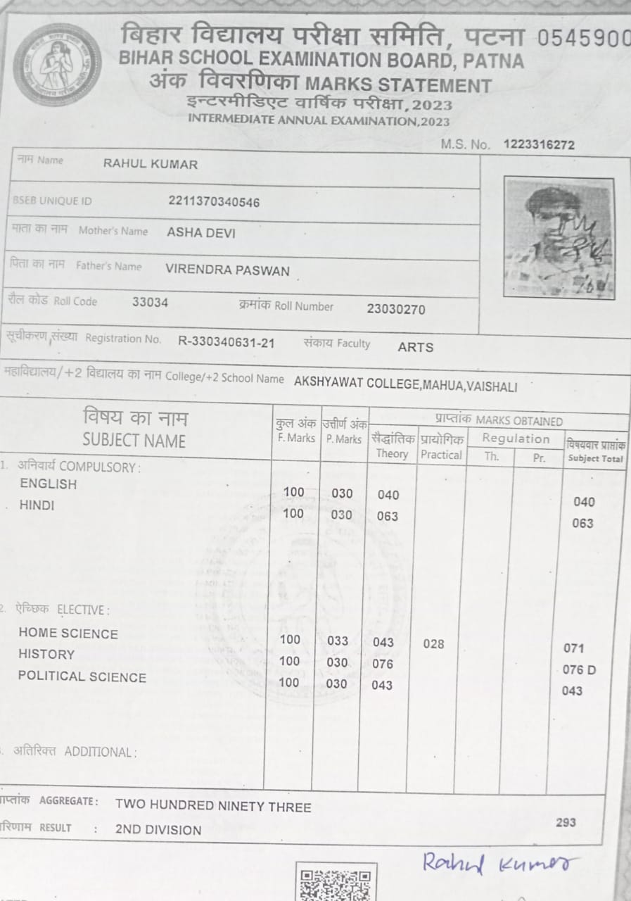 | Exam | Full Marks | Pass Marks | Marks Obtained |