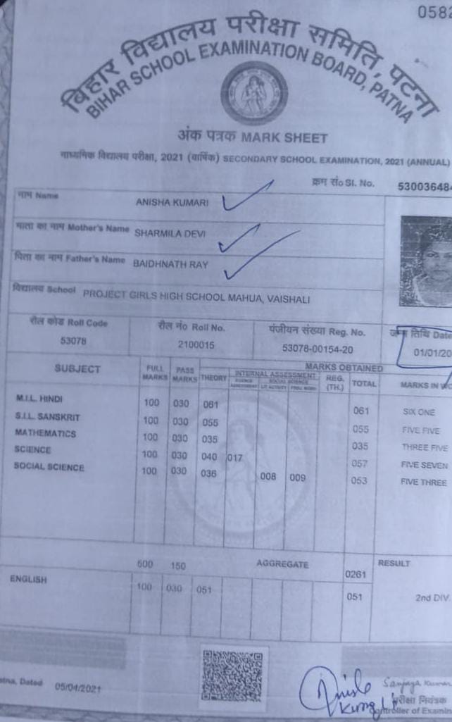 | Exam | Full Marks | Pass Marks | Marks Obtained |