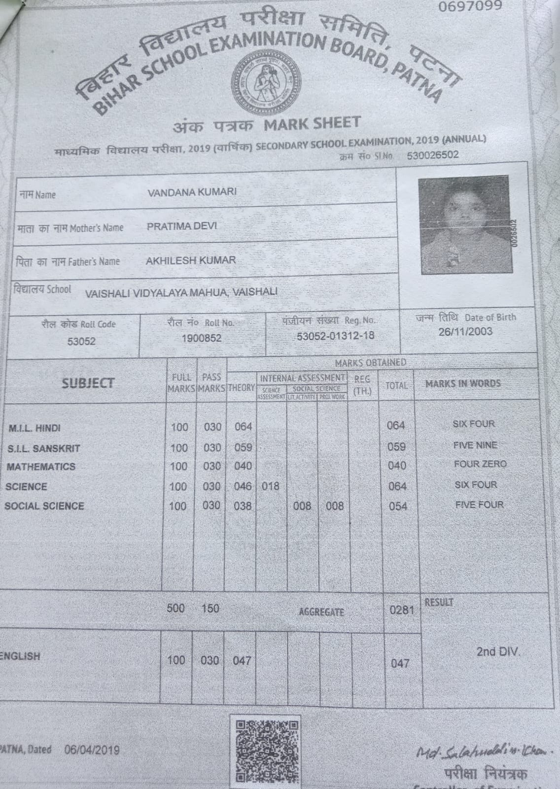 | Exam | Full Marks | Pass Marks | Marks Obtained |