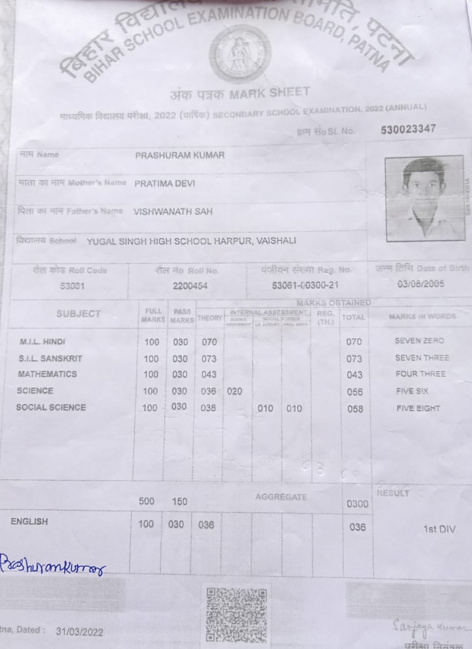 | Exam | Full Marks | Pass Marks | Marks Obtained |