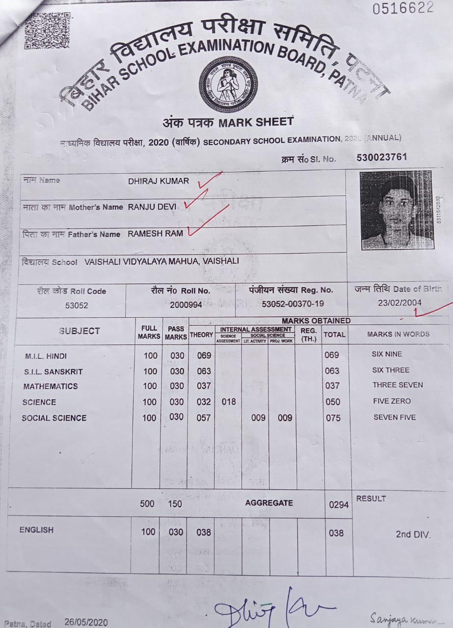 | Exam | Full Marks | Pass Marks | Marks Obtained |