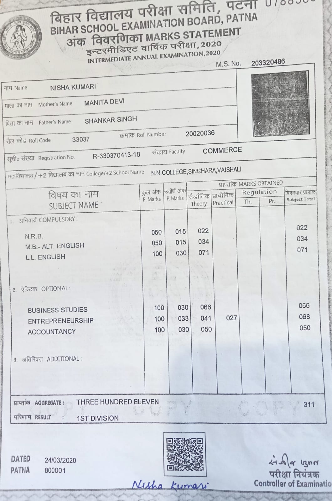 | Exam | Full Marks | Pass Marks | Marks Obtained |