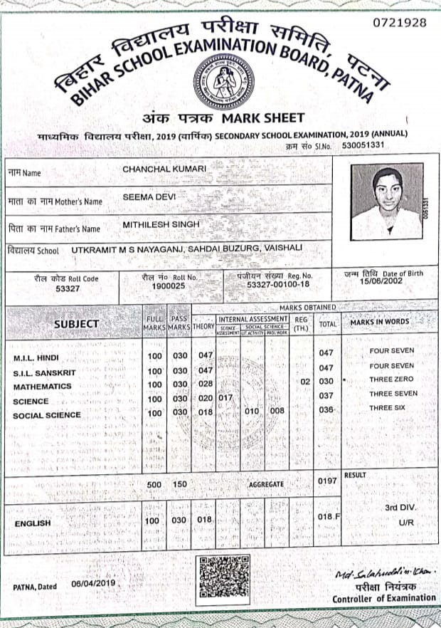 | Exam | Full Marks | Pass Marks | Marks Obtained |