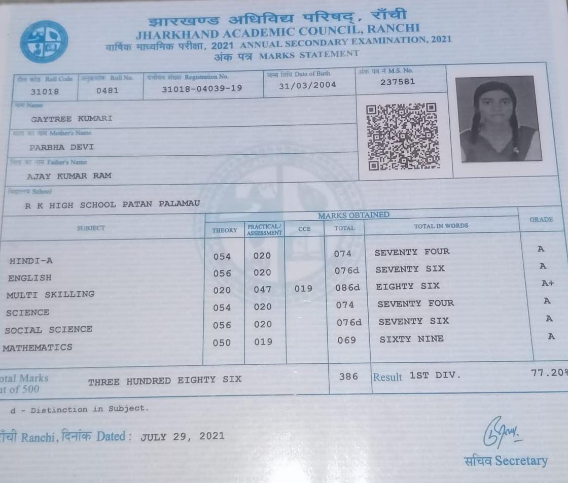 | Exam | Full Marks | Pass Marks | Marks Obtained |