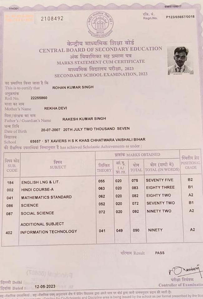 | Exam | Full Marks | Pass Marks | Marks Obtained |