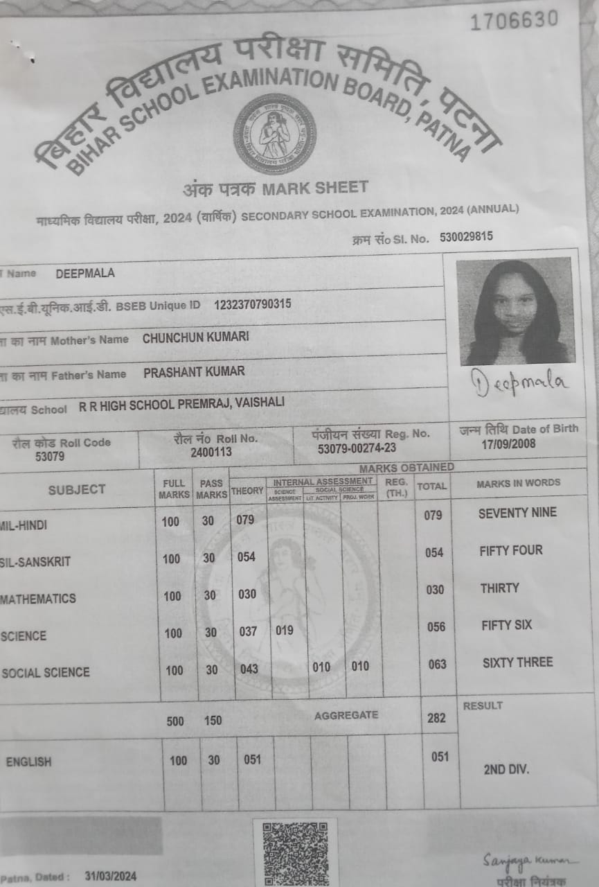 | Exam | Full Marks | Pass Marks | Marks Obtained |