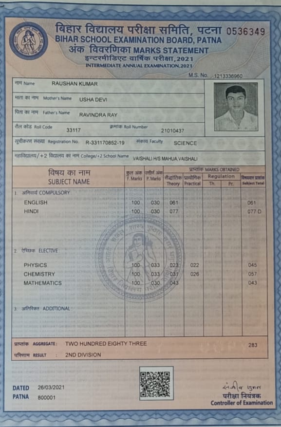 | Exam | Full Marks | Pass Marks | Marks Obtained |