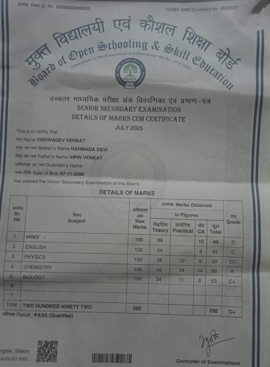 | Exam | Full Marks | Pass Marks | Marks Obtained |