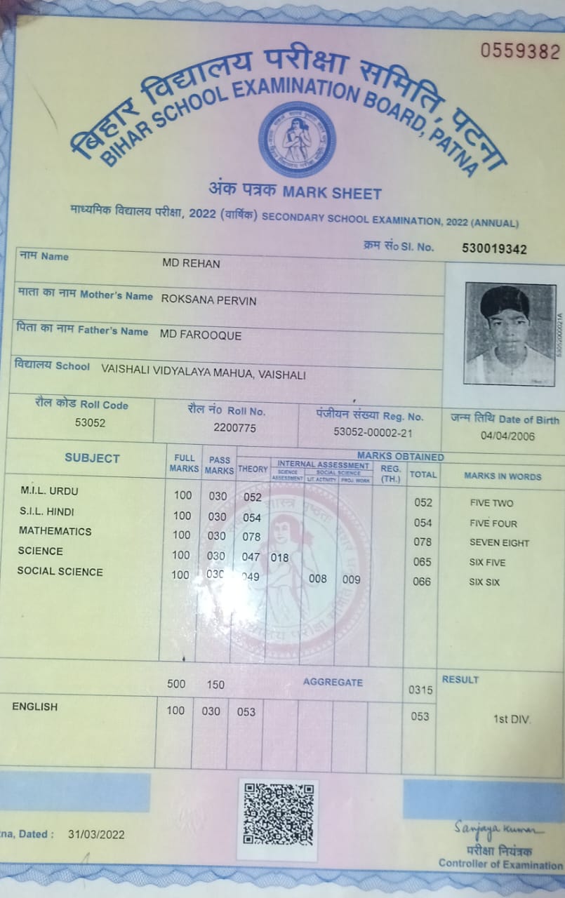 | Exam | Full Marks | Pass Marks | Marks Obtained |