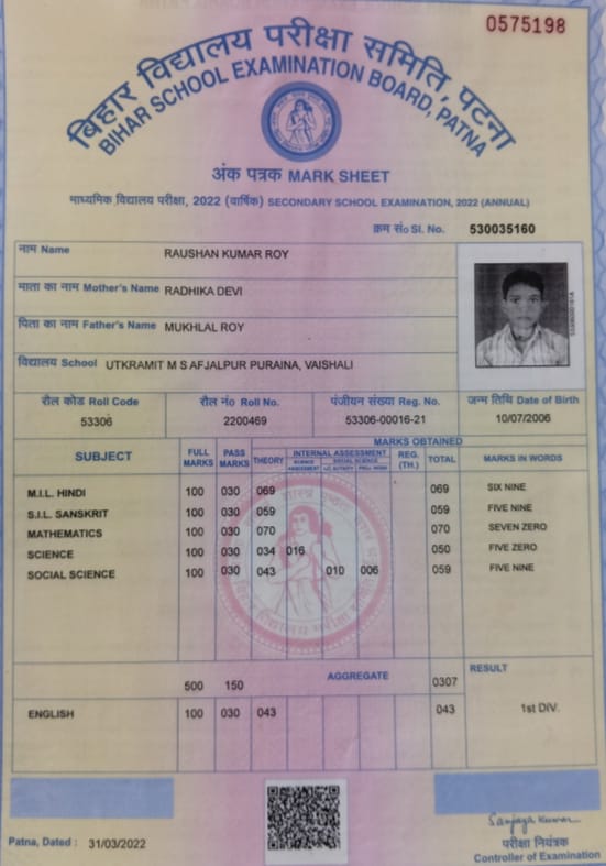 | Exam | Full Marks | Pass Marks | Marks Obtained |