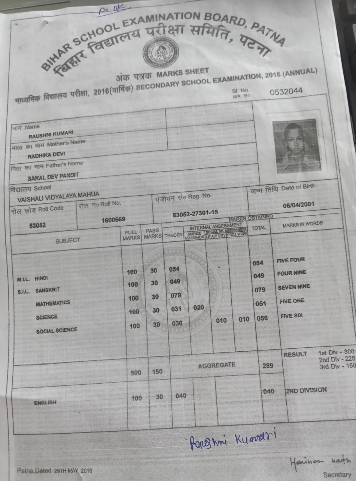 | Exam | Full Marks | Pass Marks | Marks Obtained |
