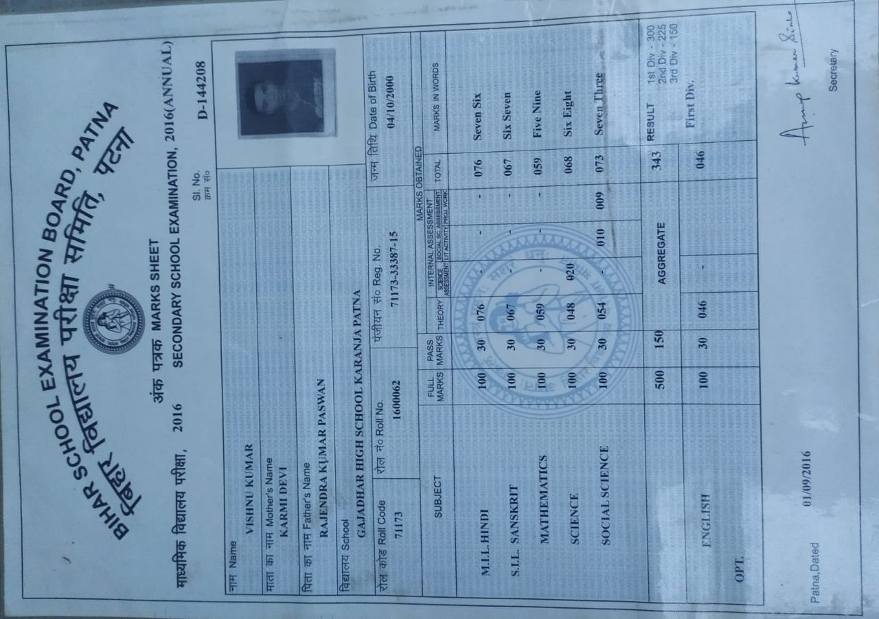 | Exam | Full Marks | Pass Marks | Marks Obtained |