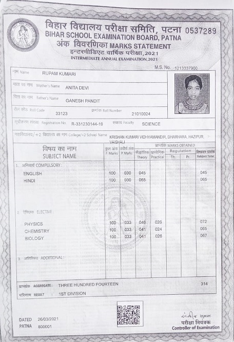 | Exam | Full Marks | Pass Marks | Marks Obtained |