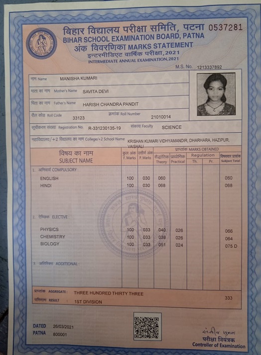 | Exam | Full Marks | Pass Marks | Marks Obtained |