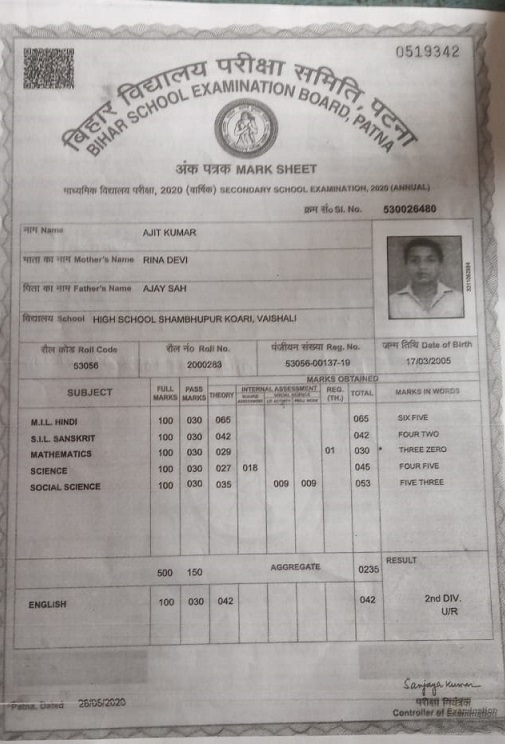 | Exam | Full Marks | Pass Marks | Marks Obtained |