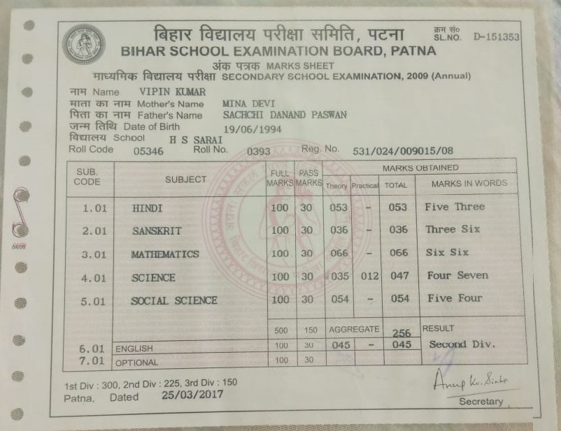 | Exam | Full Marks | Pass Marks | Marks Obtained |