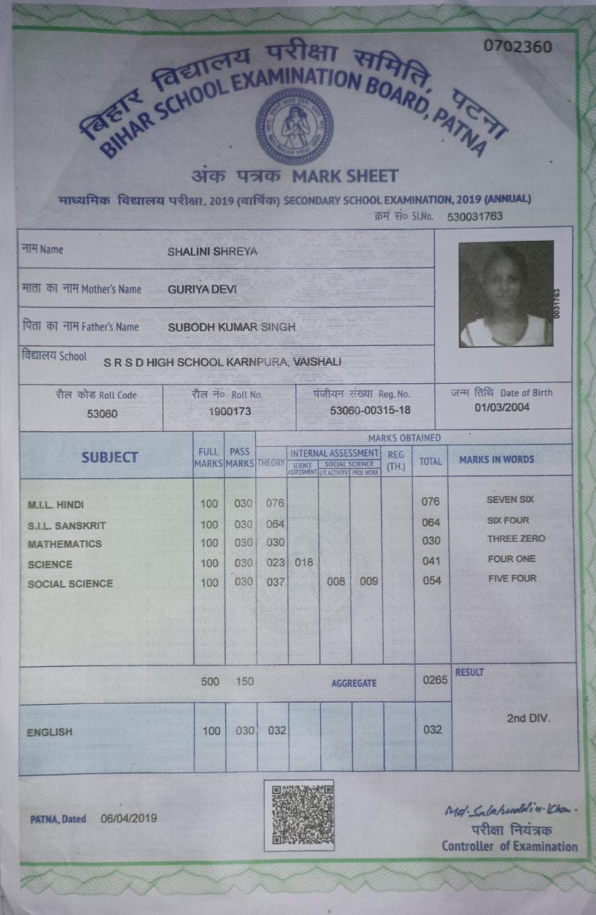 | Exam | Full Marks | Pass Marks | Marks Obtained |