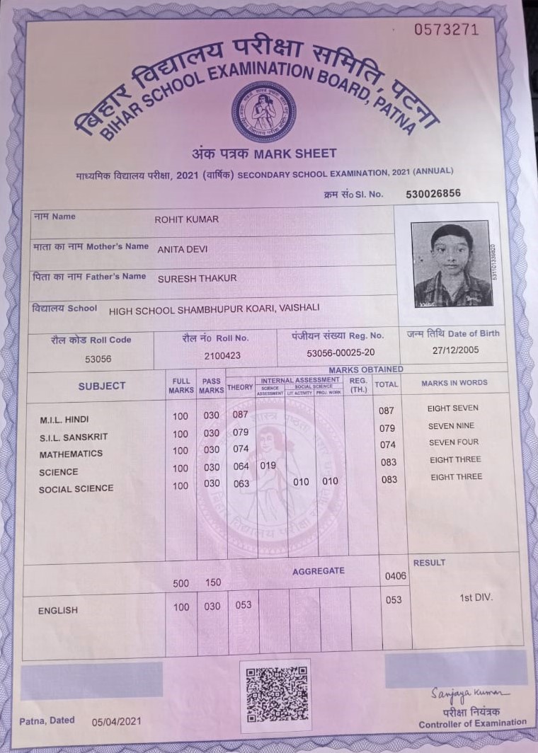 | Exam | Full Marks | Pass Marks | Marks Obtained |