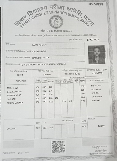 | Exam | Full Marks | Pass Marks | Marks Obtained |