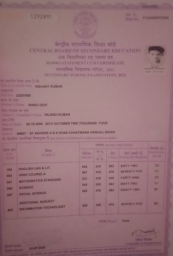 | Exam | Full Marks | Pass Marks | Marks Obtained |