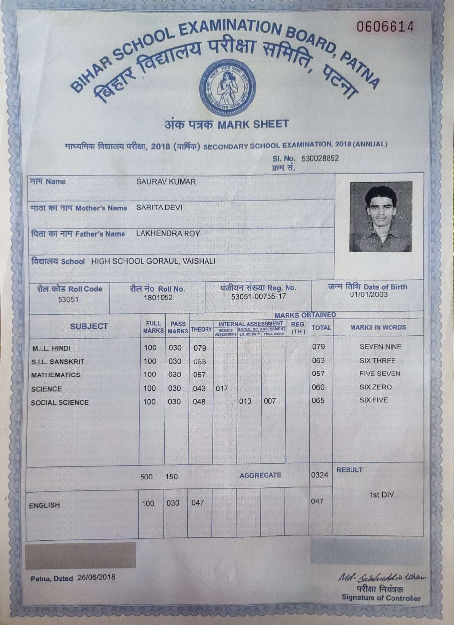 | Exam | Full Marks | Pass Marks | Marks Obtained |