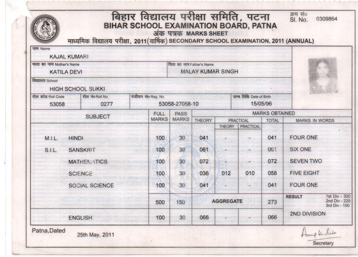 | Exam | Full Marks | Pass Marks | Marks Obtained |
