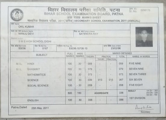 | Exam | Full Marks | Pass Marks | Marks Obtained |