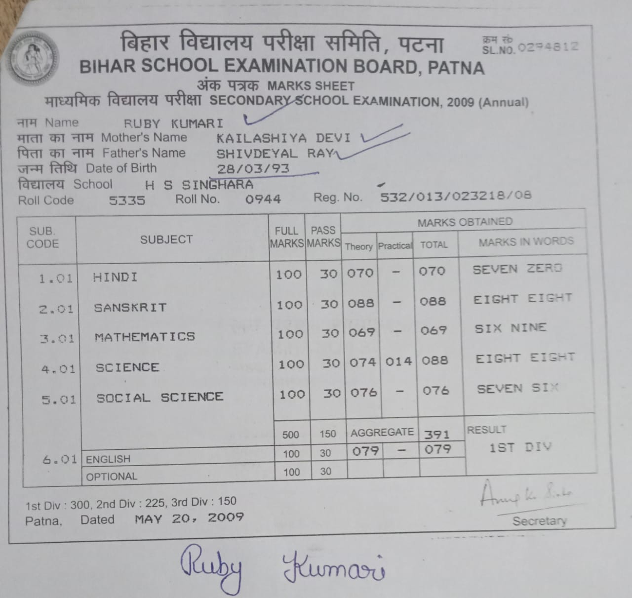 | Exam | Full Marks | Pass Marks | Marks Obtained |