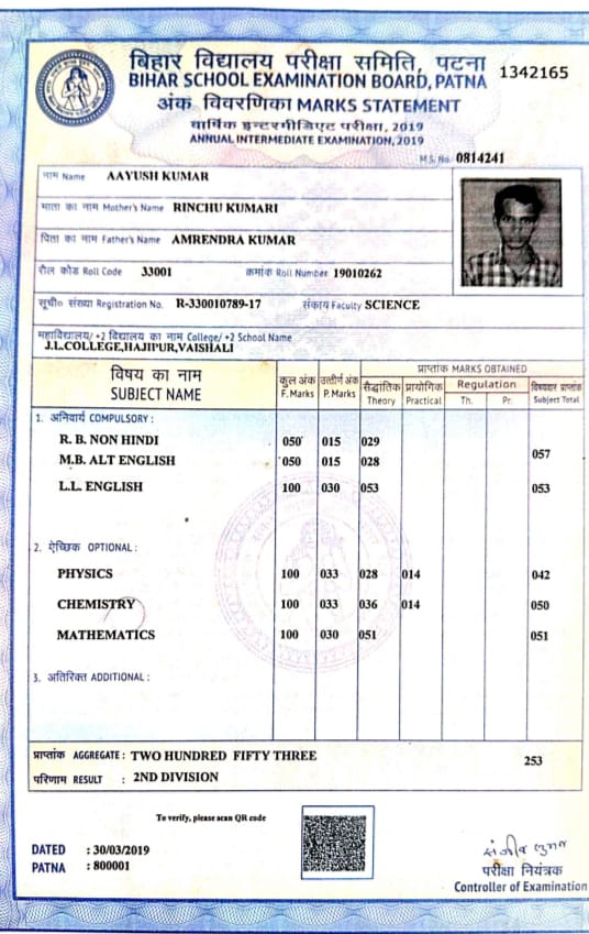 | Exam | Full Marks | Pass Marks | Marks Obtained |
