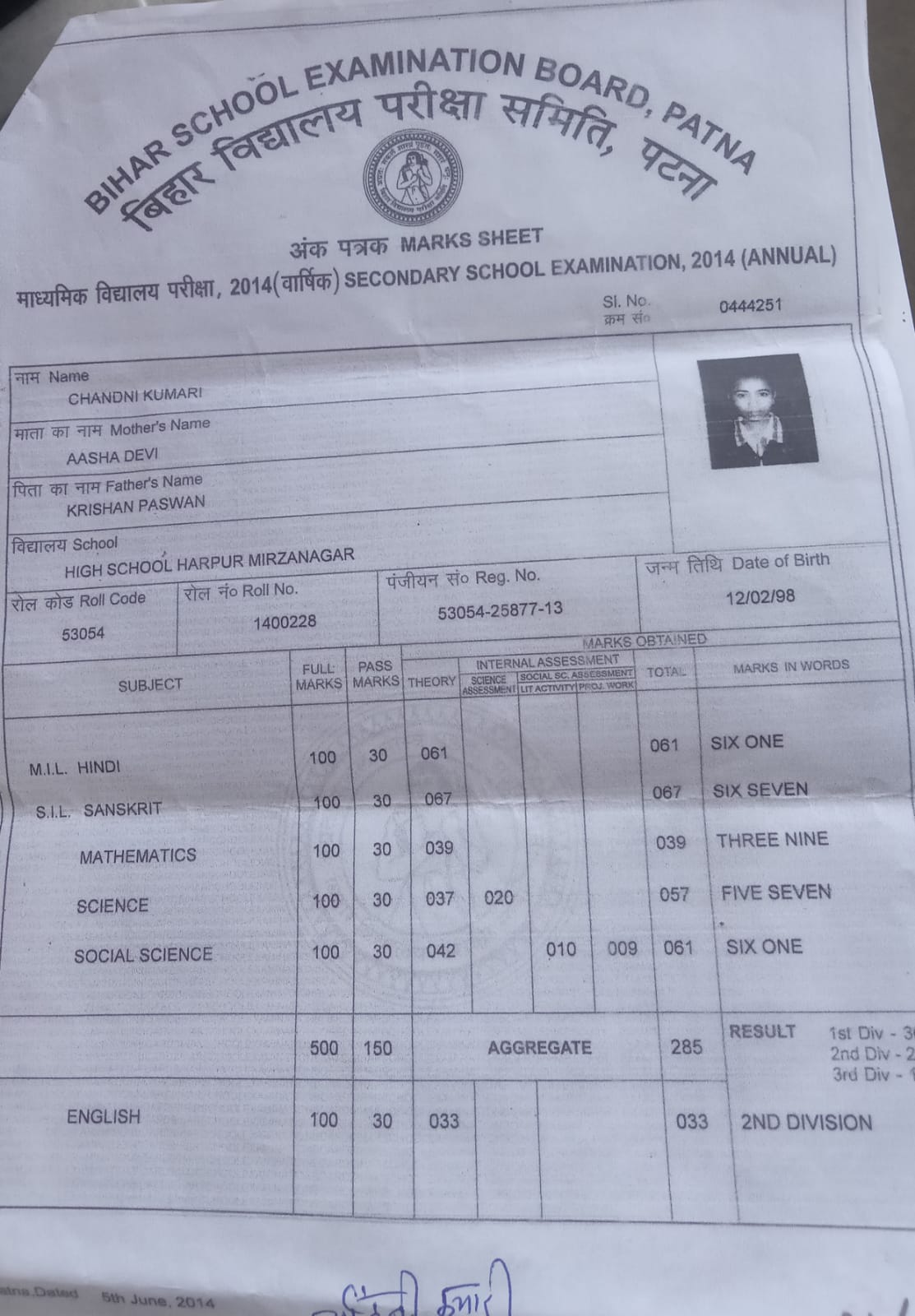 | Exam | Full Marks | Pass Marks | Marks Obtained |