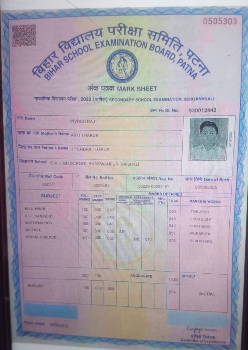 | Exam | Full Marks | Pass Marks | Marks Obtained |