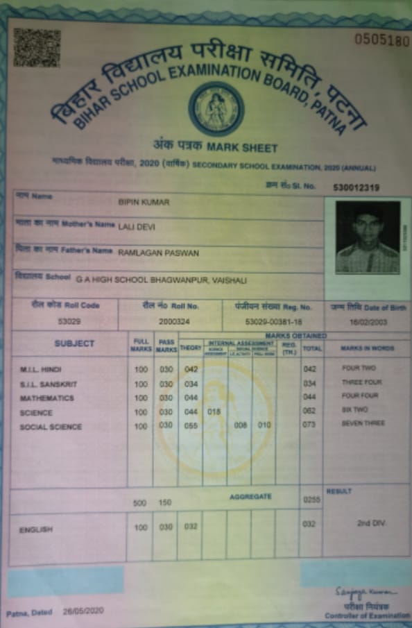 | Exam | Full Marks | Pass Marks | Marks Obtained |